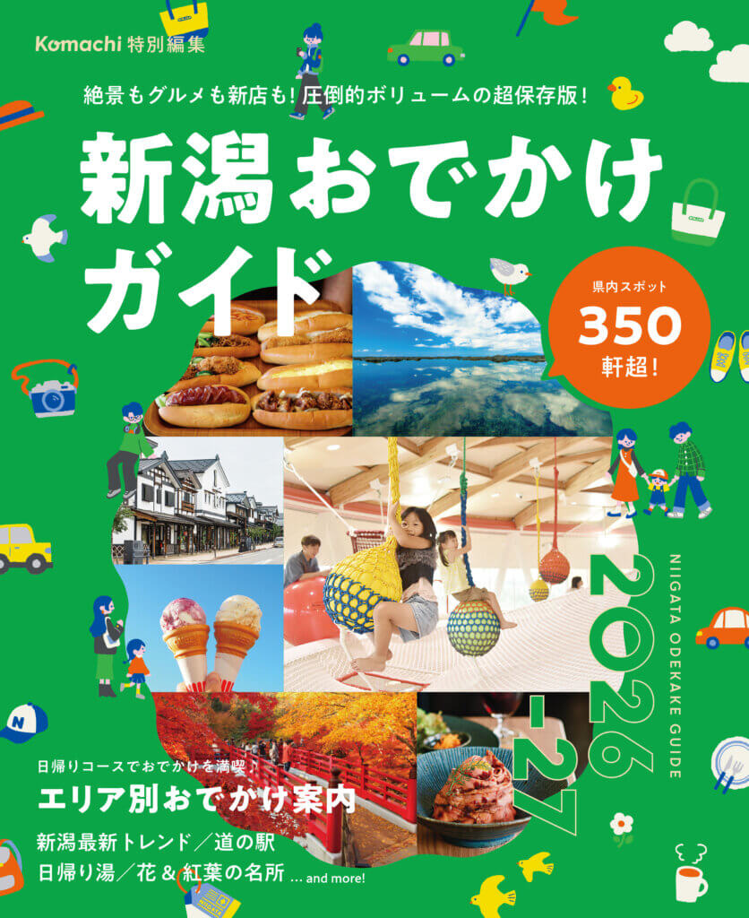 2026年3月28日発売のKomachi特別編集の別冊誌「新潟おでかけガイド2026-2027」に西蒲区の日帰り温泉施設「じょんのび館」と、秋葉区の日帰り温泉施設「花の湯館」、三条市の日帰り温泉施設「さぎの湯」が施設の紹介で掲載されました。